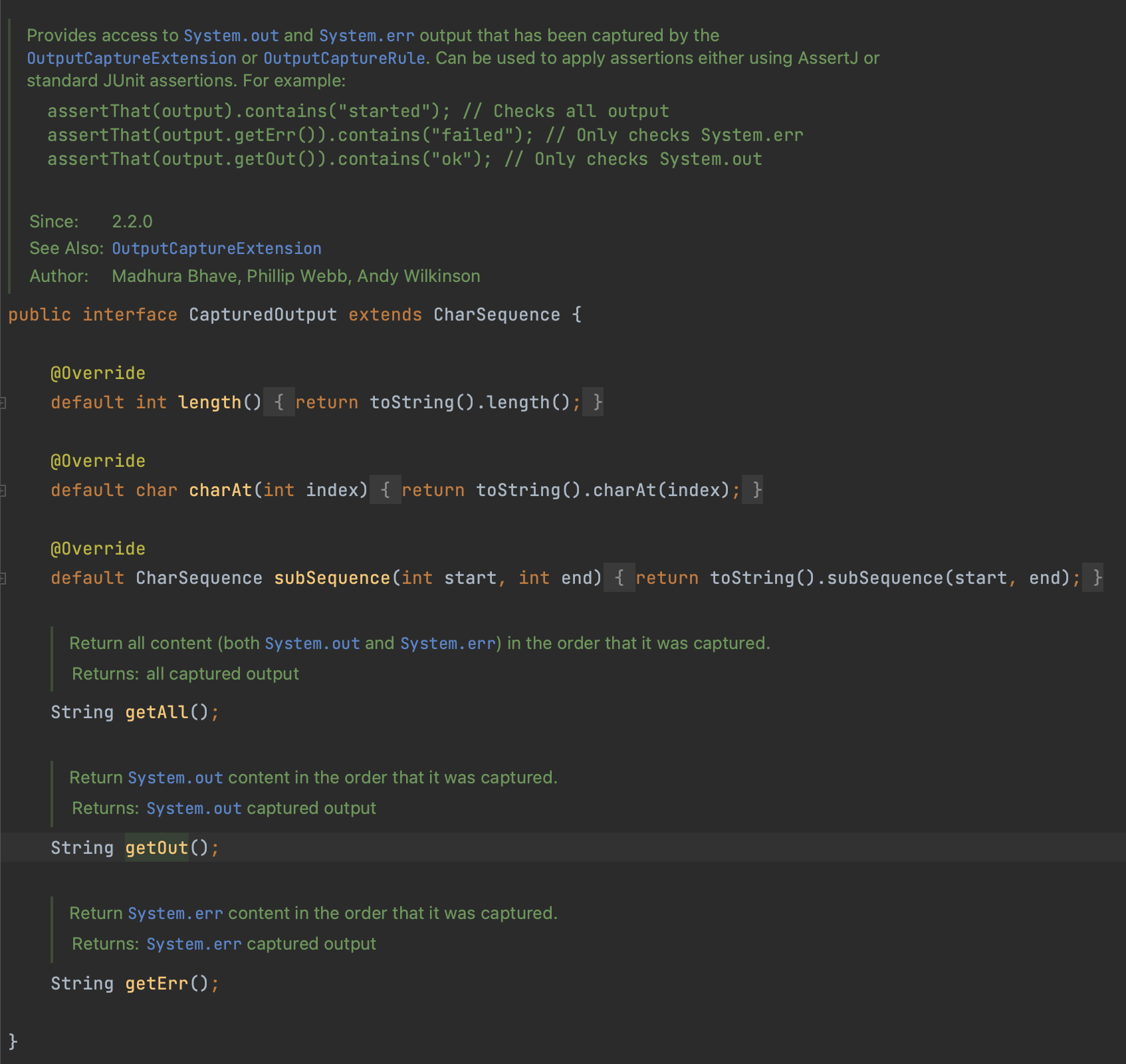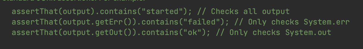 안내돼있는 것처럼, System.out, System.err 로 출력되는 코드들을 캡처해서 AssertJ, JUnit 테스트에서 로그 출력 여부를 확인할 수 있다.