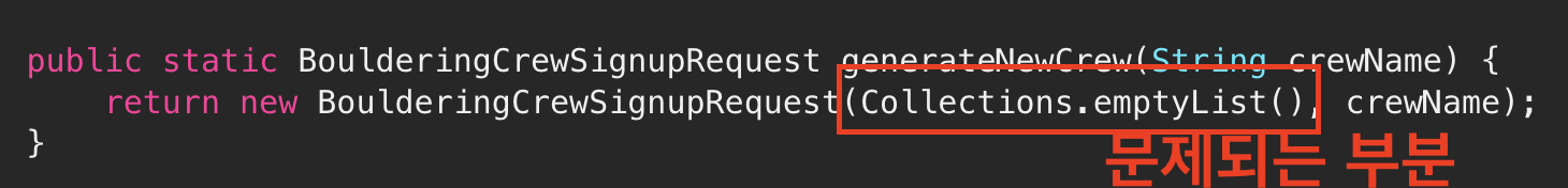 return new BoulderingCrewSignupRequest(Collections.emptyList(), crewName);