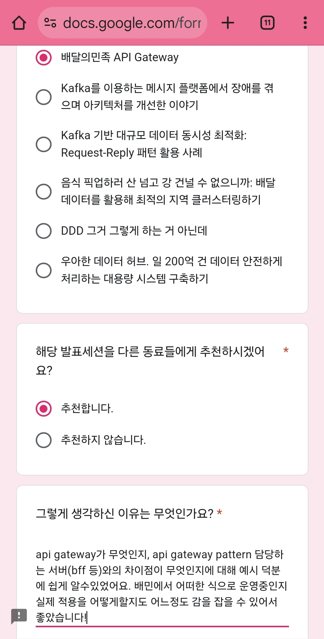배달의민족 내에서 api gateway를 어떻게 구현하고 있는지에 대해서도 얘기를 들어보았다.