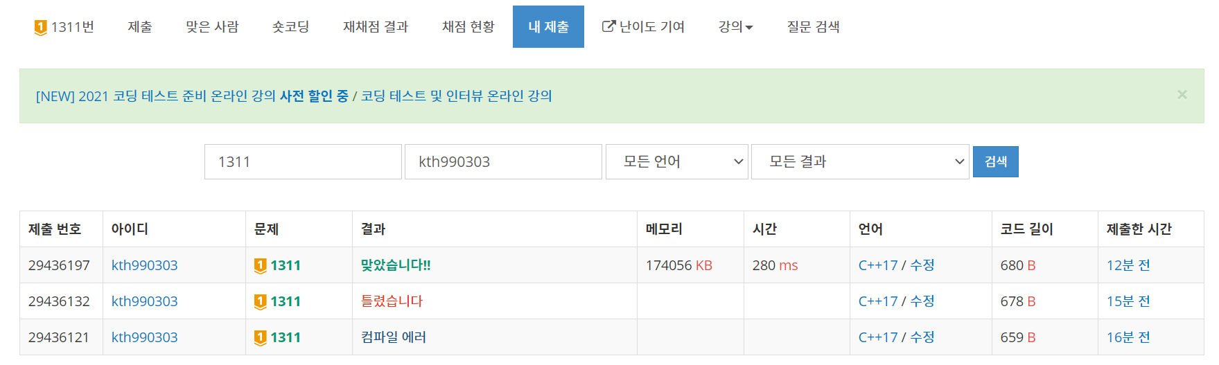 #include <cstring>을 넣지 않으면 컴파일 에러가 뜬다는 것을 망각하고 바로 제출을 넣어 컴파일에러를 띄웠다.