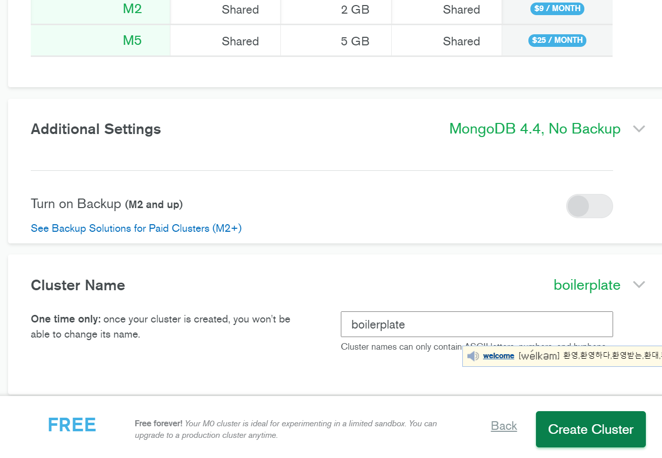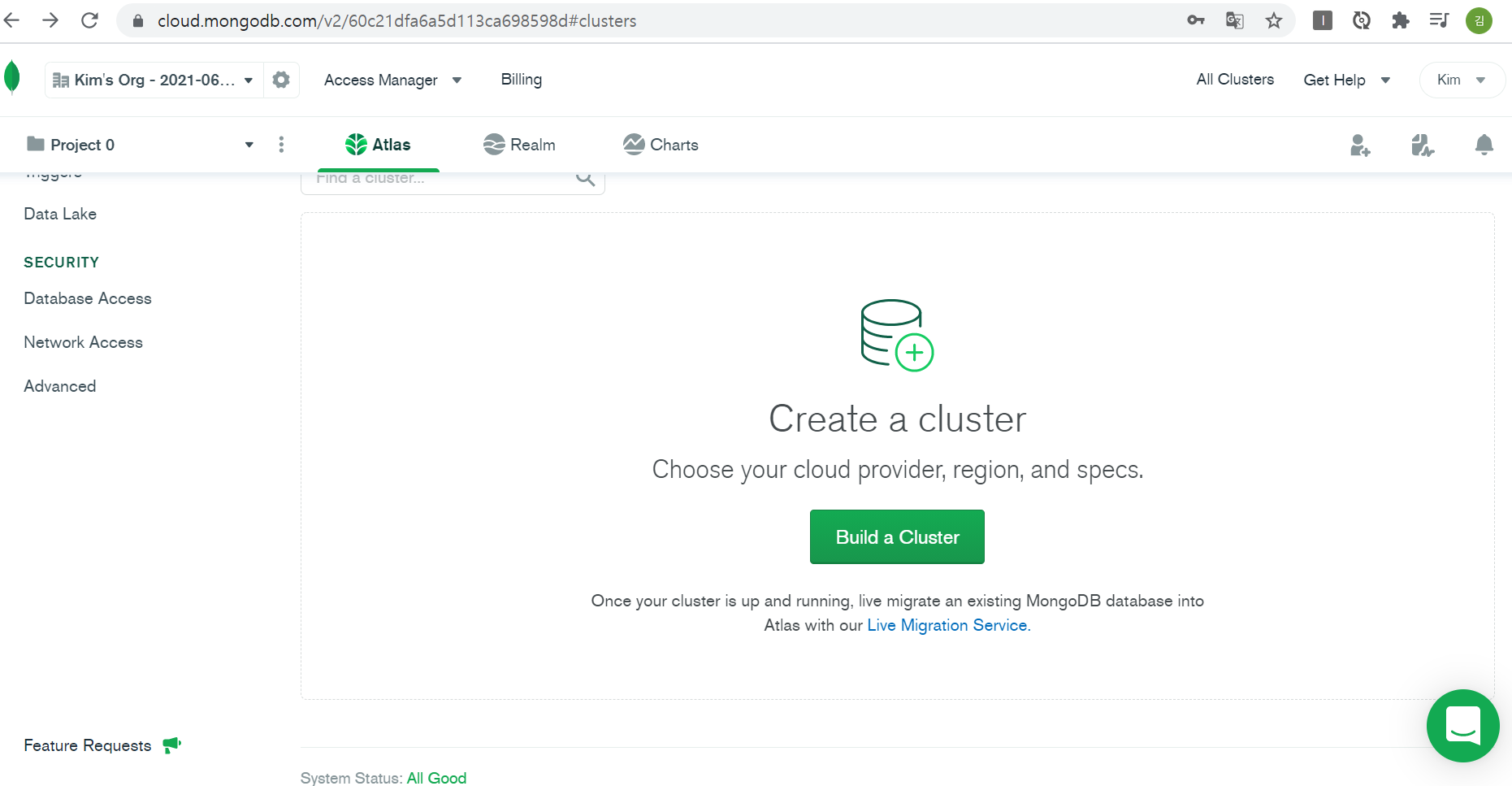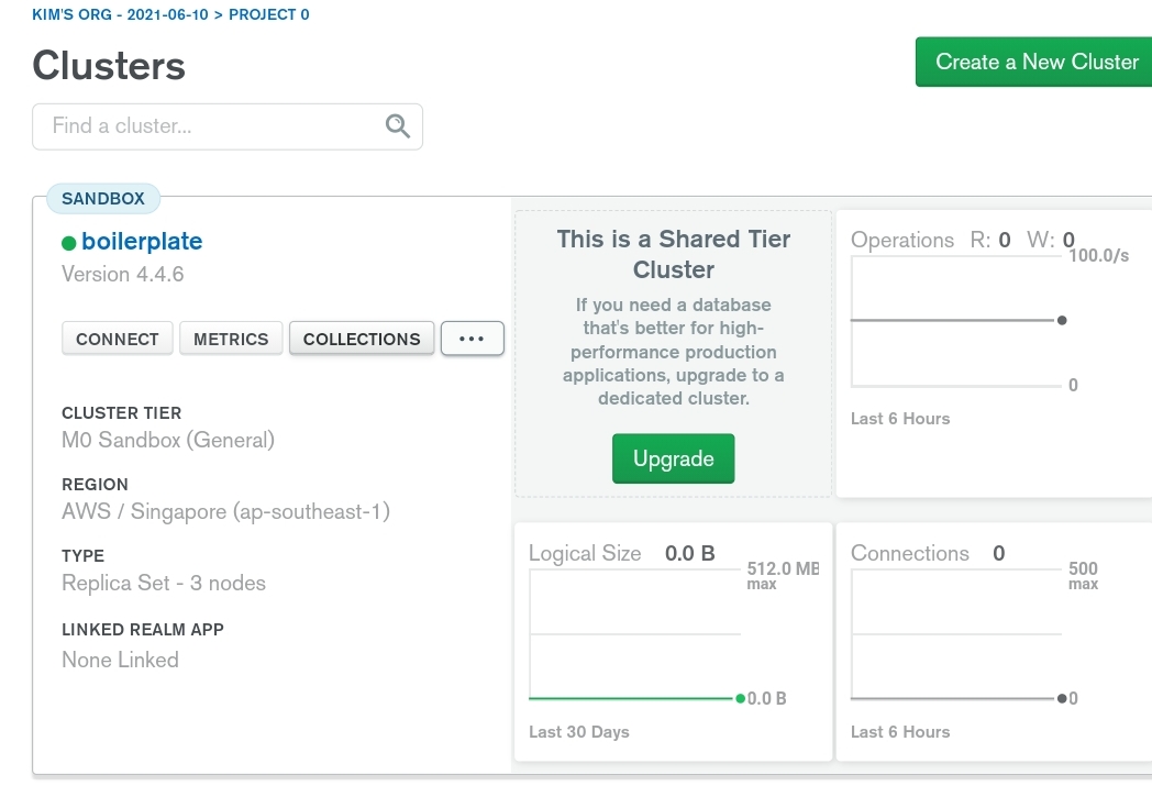 난 몽고디비를 이용해본 적이 없어서 그런지 메인화면에 바로 Create a cluster 메뉴가 보인다.