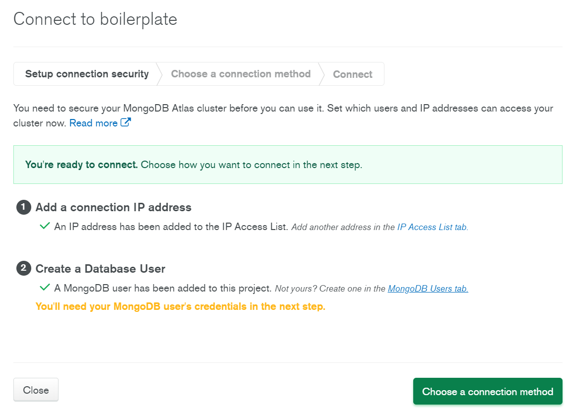 또한, myFirstDatabase라고 돼있는 부분엔 뭐라뭐라 적혀있긴 한데, 가만히 놔둬도 잘 돌아감을 확인하였다.