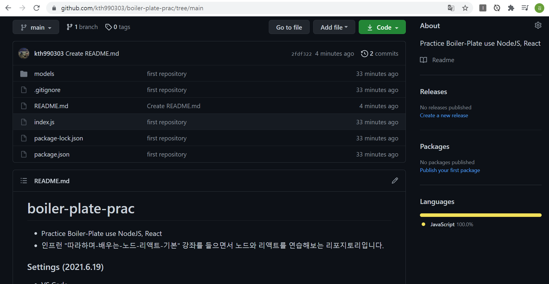 - 이후 git add . 을 입력하여 node_modules를 제외한 모든 파일을 git에 올려주자.