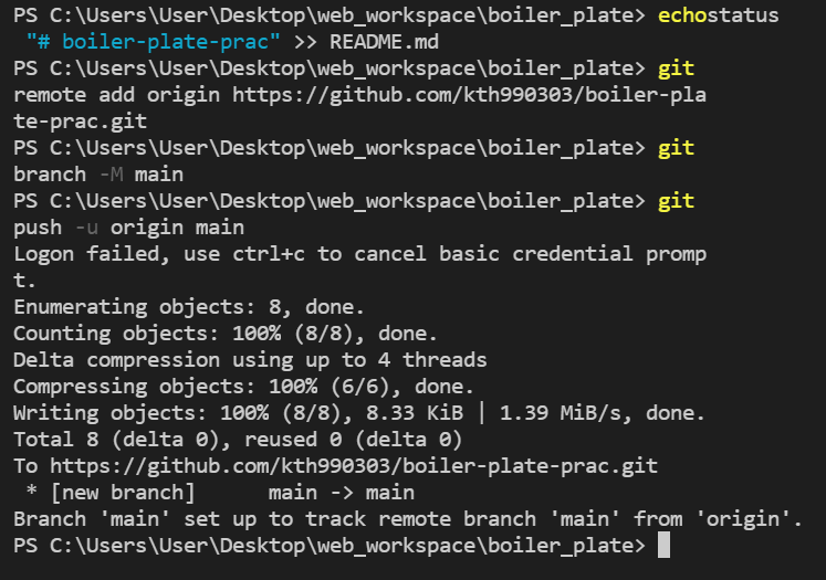 - echostatus "# boiler-plate-prac" >> README.md