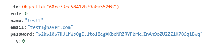 그동안은 몽고디비에 postman으로 user를 저장할 때 db에 비밀번호가 그대로 실려 보안에 취약했었다.