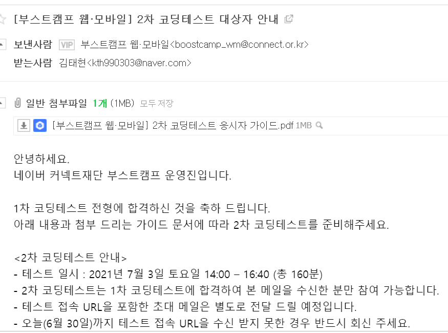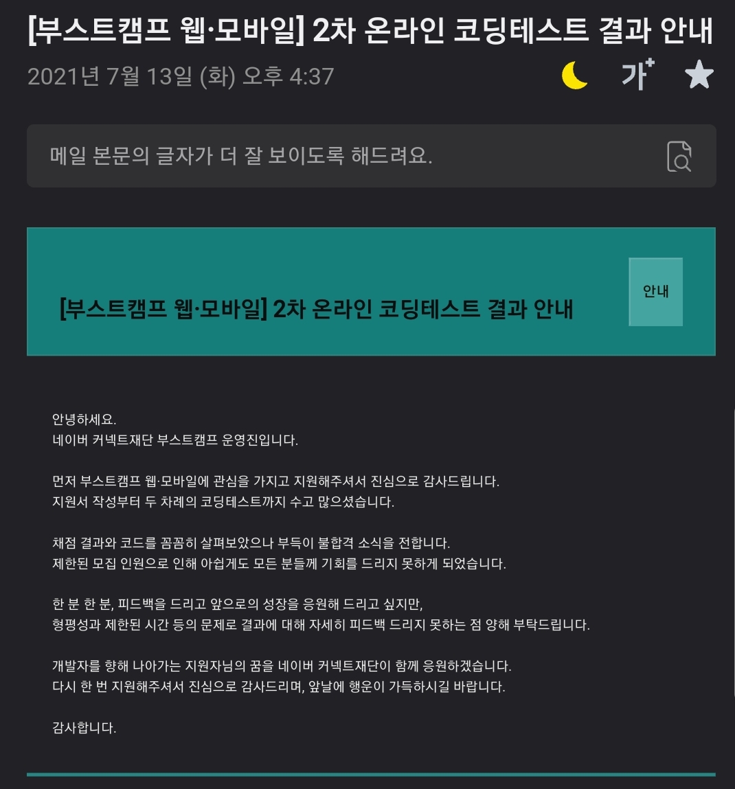오후 4시 41분, 결과 여부가 메일로 왔다.