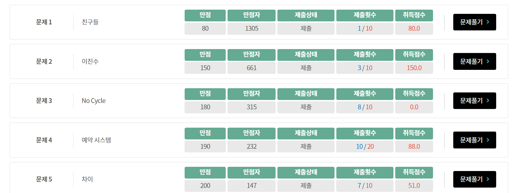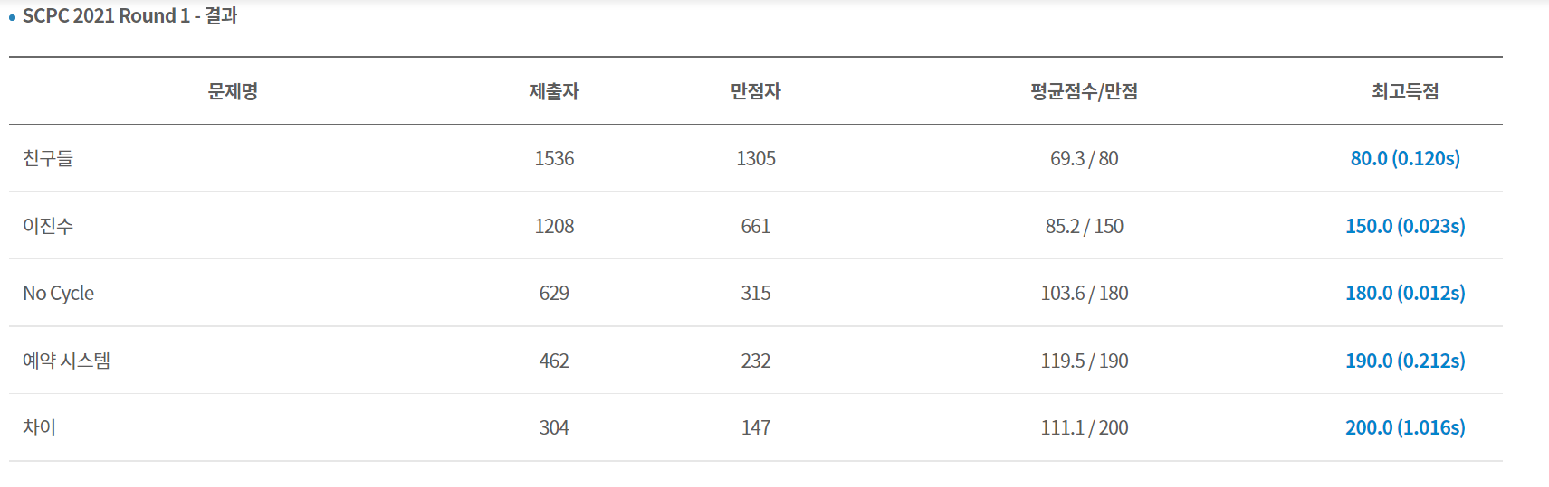 난 2차 예선을 갈 수 있을까? 갈 수 있을 것 같기도 한데, 다른 문제들 만점자수가 꽤 많은 편이라 감이 잘 안온다.